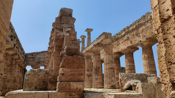L’après-midi, visite de PAESTUM, une cité grecque édifiée en l’honneur du dieu des mers : Poséidon, où nous découvrons le temple d’Héra, le temple de Poséidon, le temple d’Athéna et la voie sacrée.