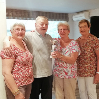 Puis 49 convives ont partagé un excellent repas, aux dires de tout le monde, au Restaurant L'Amphitryon à Roncq. Notre présidente, Chantal, a pu procéder à la remises des coupes aux premières équipes sous de chaleureux applaudissements.